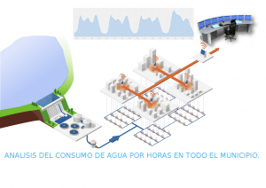 El sistema de gestión inteligente del agua permite la lectura automática de todos los contadores domiciliados en el municipio. En total son 1180 contadores, que recogen datos de hasta 24 mediciones diarias. Estos datos se reciben en un centro de control donde se analizan y se gestionan, detectando las anomalías o desviaciones a través de alertas. De esta forma no solo se realiza una facturación exacta de los consumos, sino que se avisa ante la evidencia de fugas, flujos invertidos, y otras anomalías. También permite un uso social asociando alarmas por faltas anómalas de consumo en aquellos domicilios donde viven solas personas con problemas de movilidad. La comunicación de estos avisos e incidencias se realiza en el municipio de forma muy dinámica y directa a través de grupos de WhatsApp creados para tal fin.